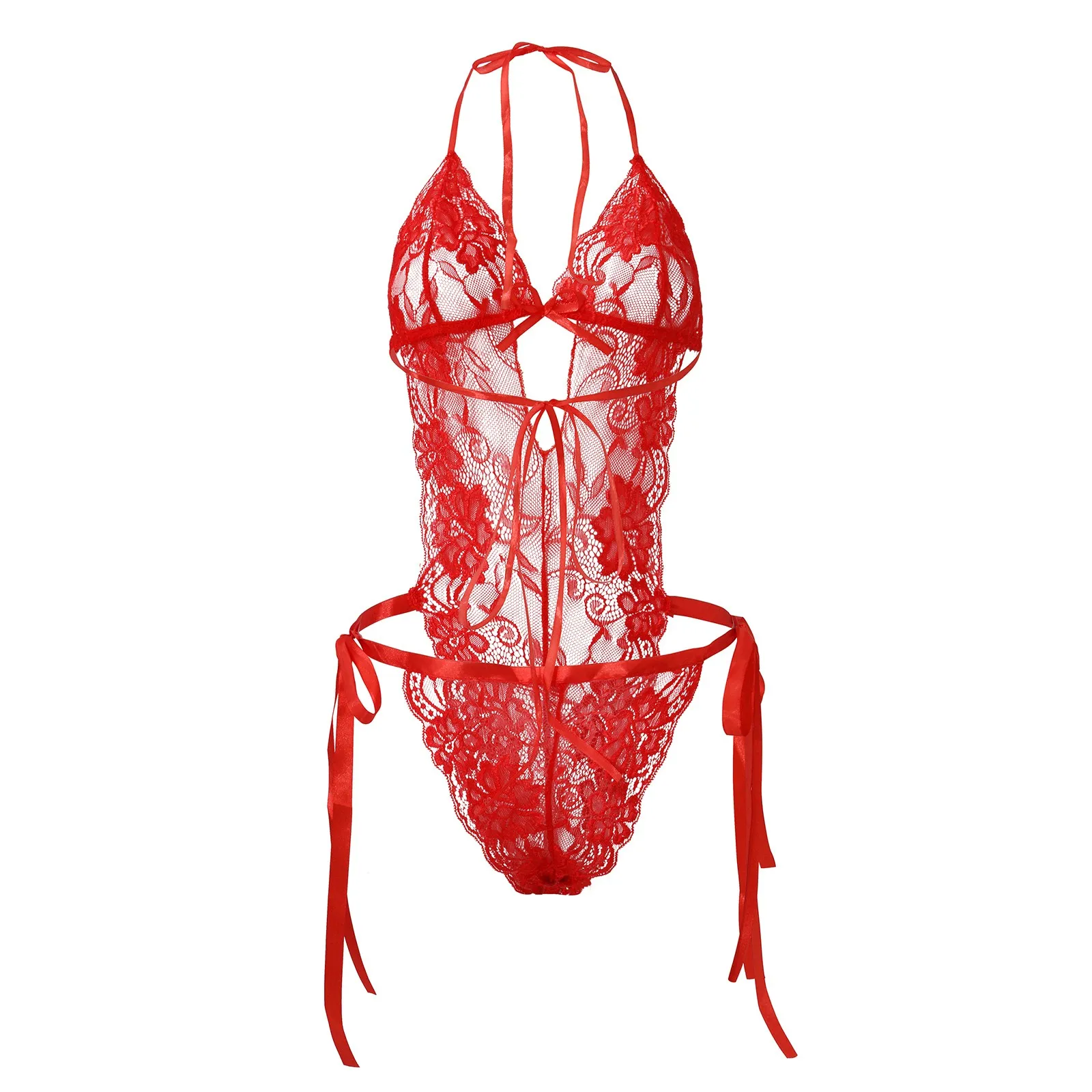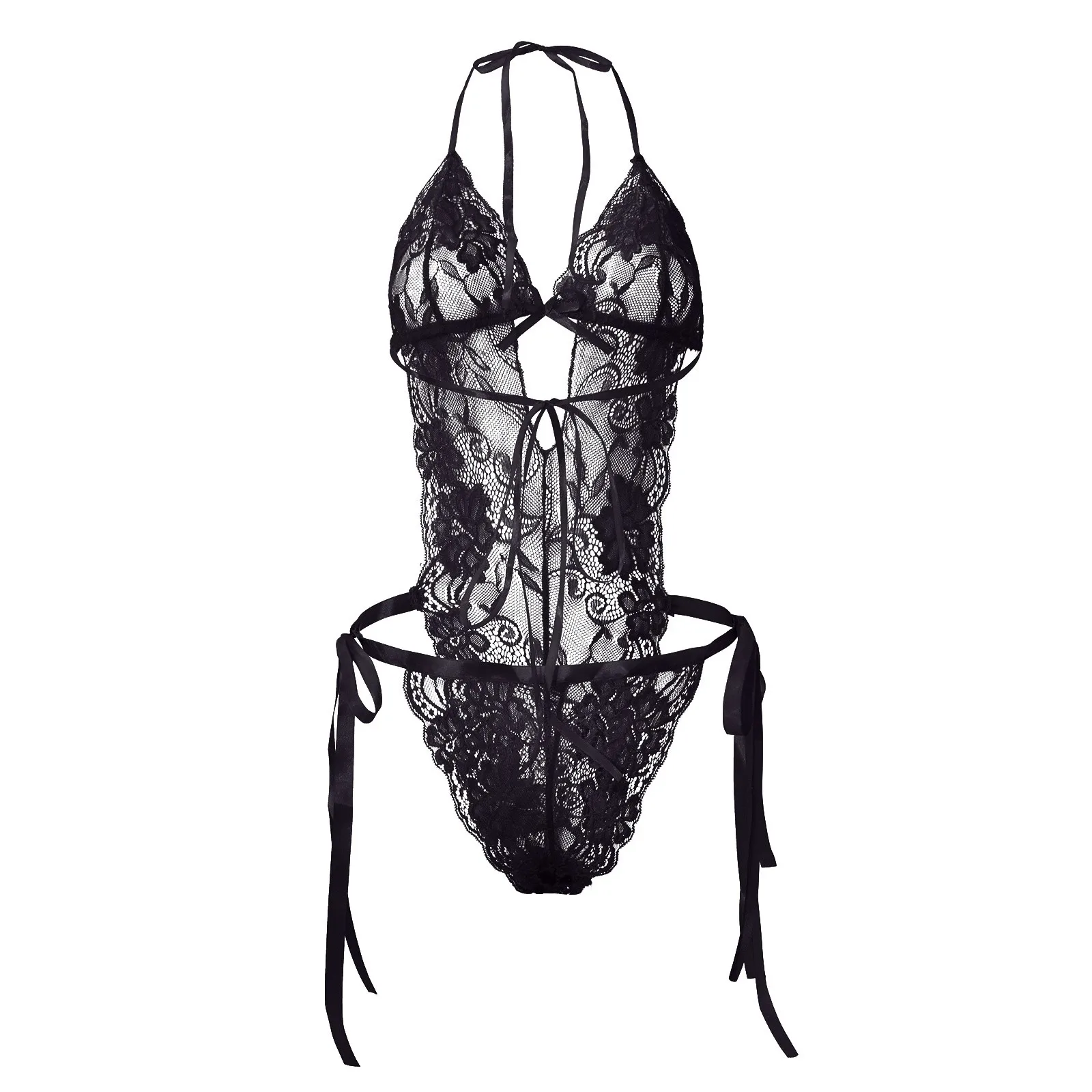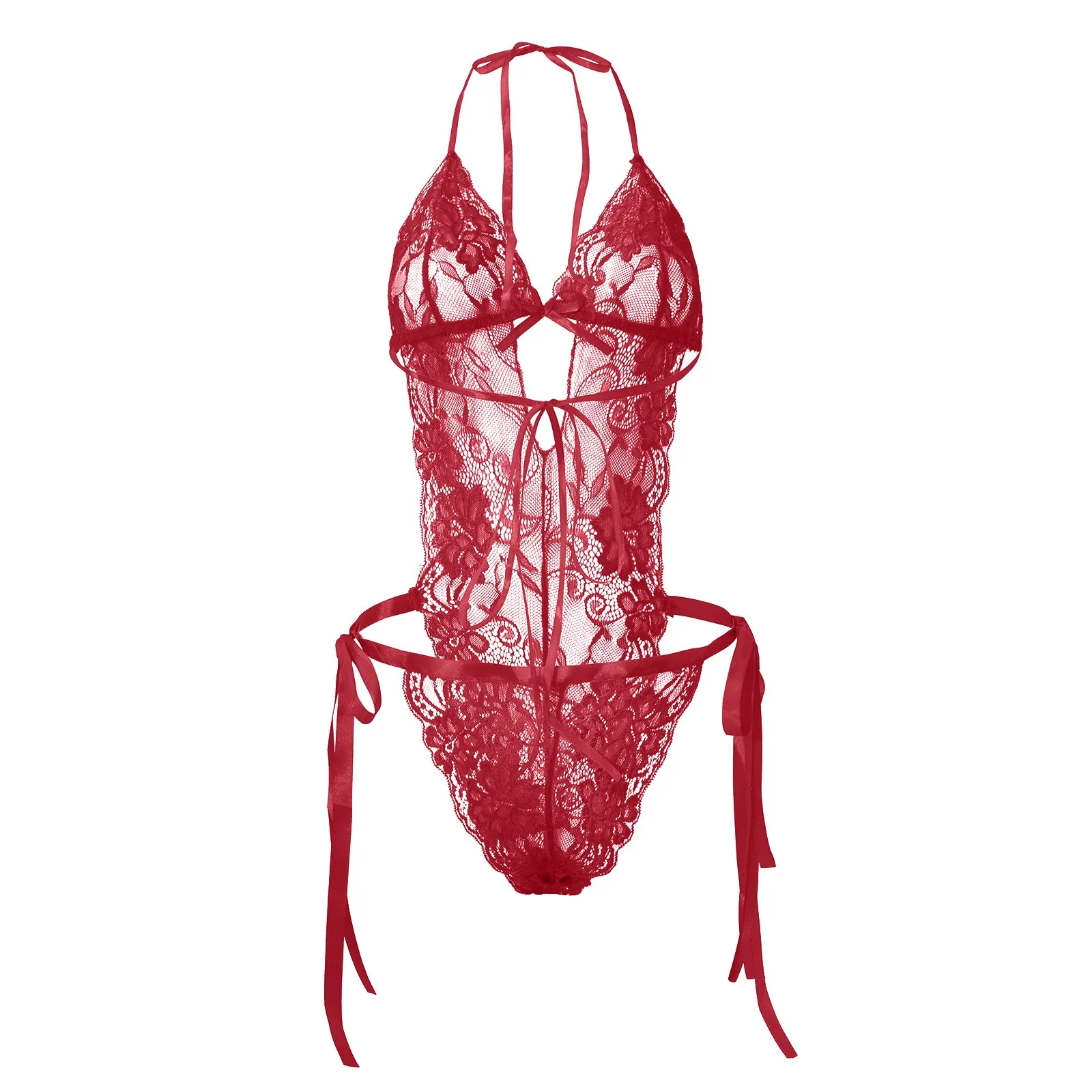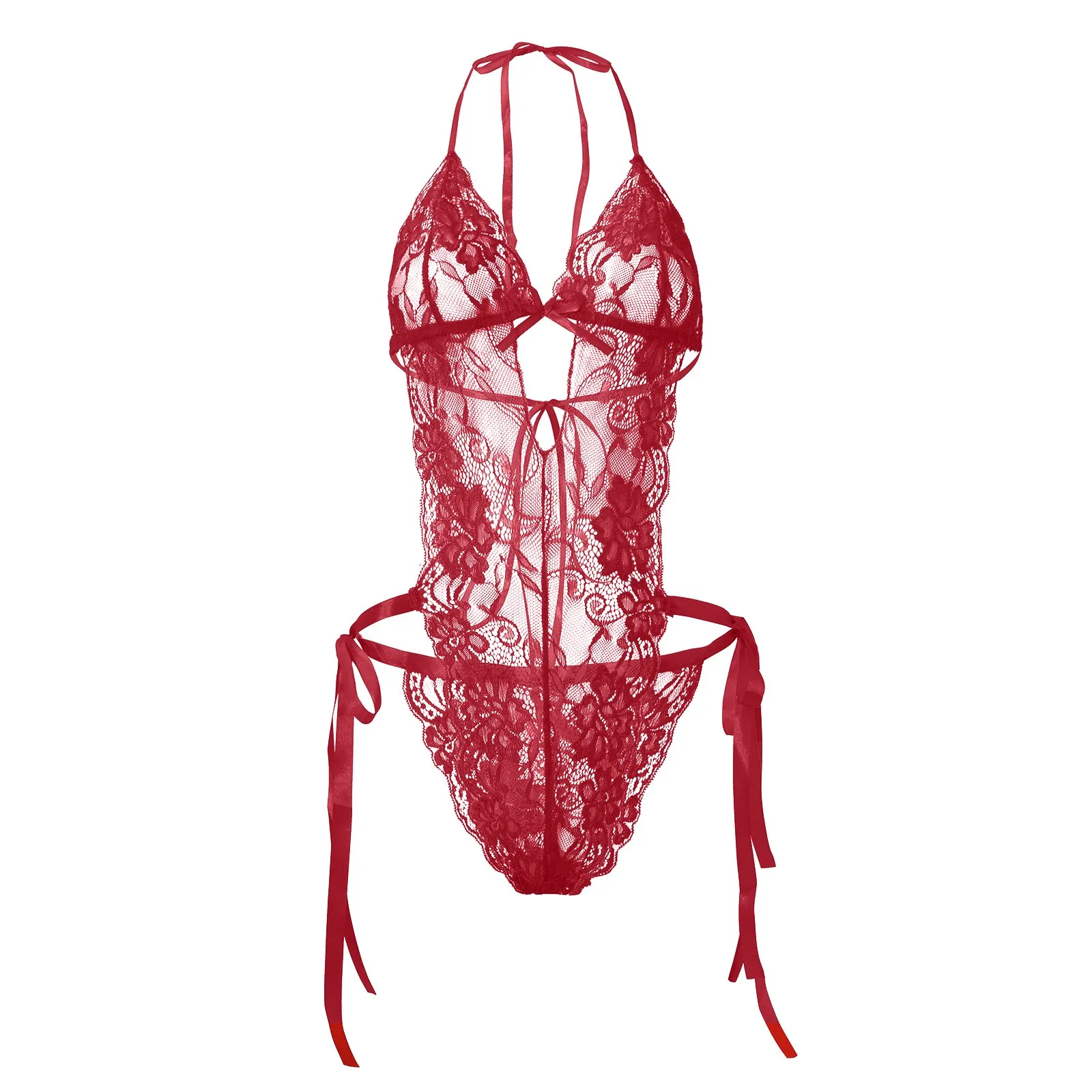Ladies Sexy Solid Color Lace Lace-Up Backless Lingerie
