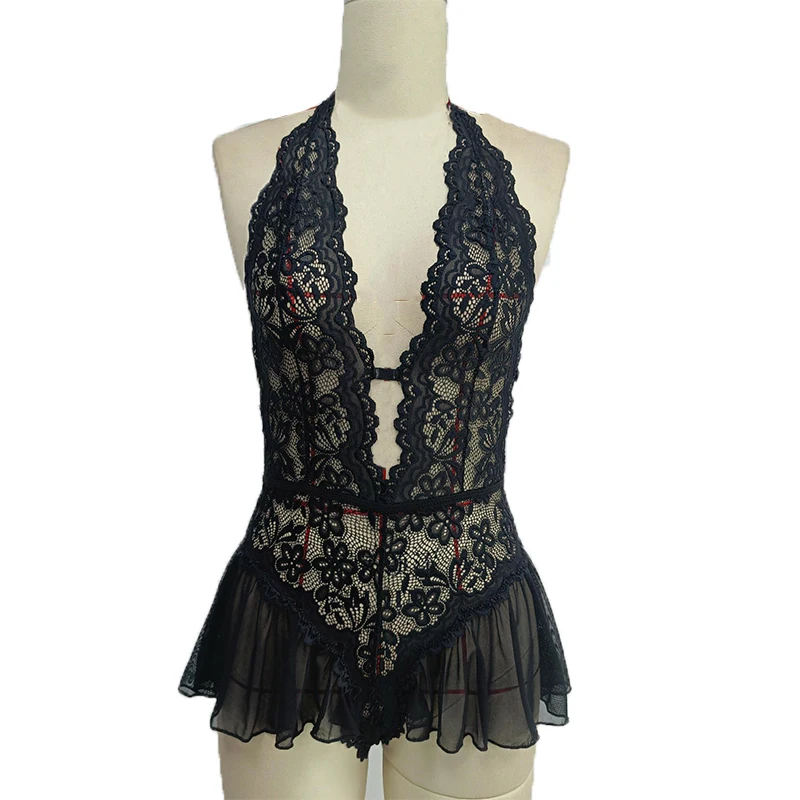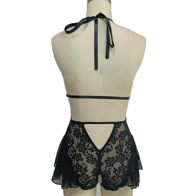 Front Open Lace-Up Lingerie Skirt Set